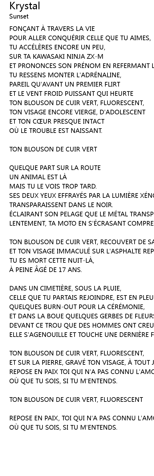 | ET TON VISAGE IMMACULÉ SUR L'ASPHALTE REPOSANT. | |