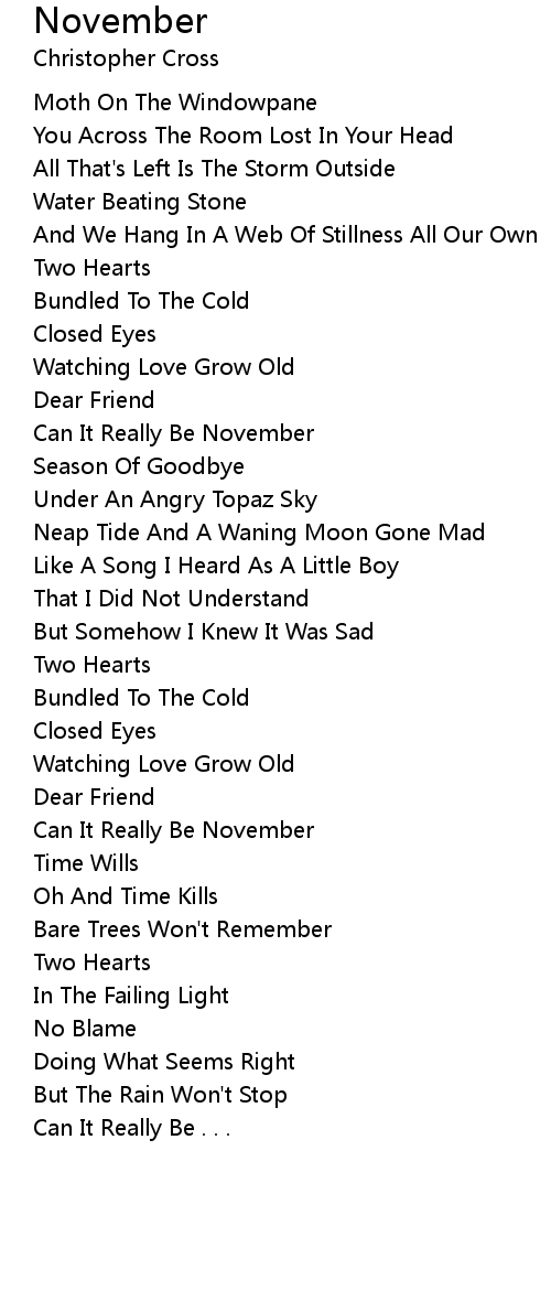 Can It Really Be November |