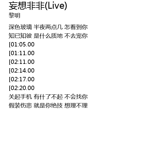 | [02:44.00][02:11.00][01:18.00] | 如何 提及你 快叫我妄想非非 |