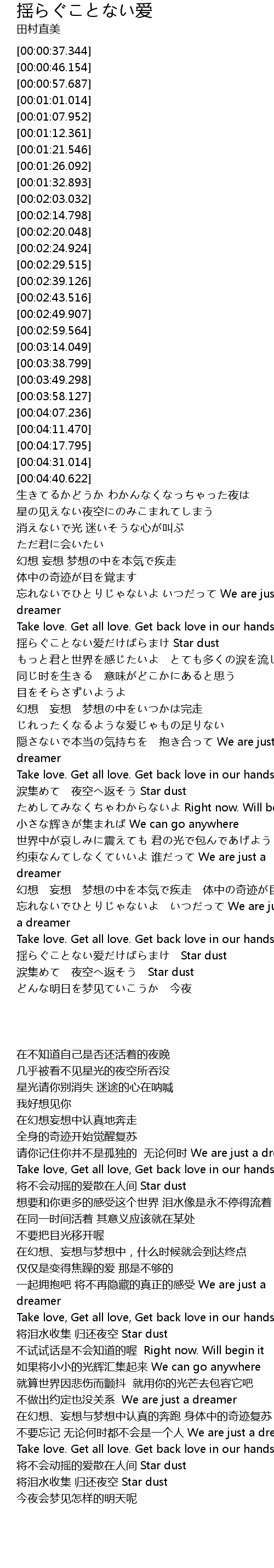 | [04:12.03] | 揺らぐことない爱だけばらまけ Star dust |