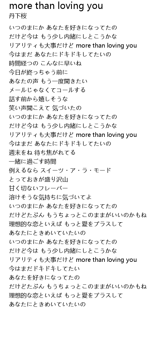 | リアリティも大事だけど more than loving you | |