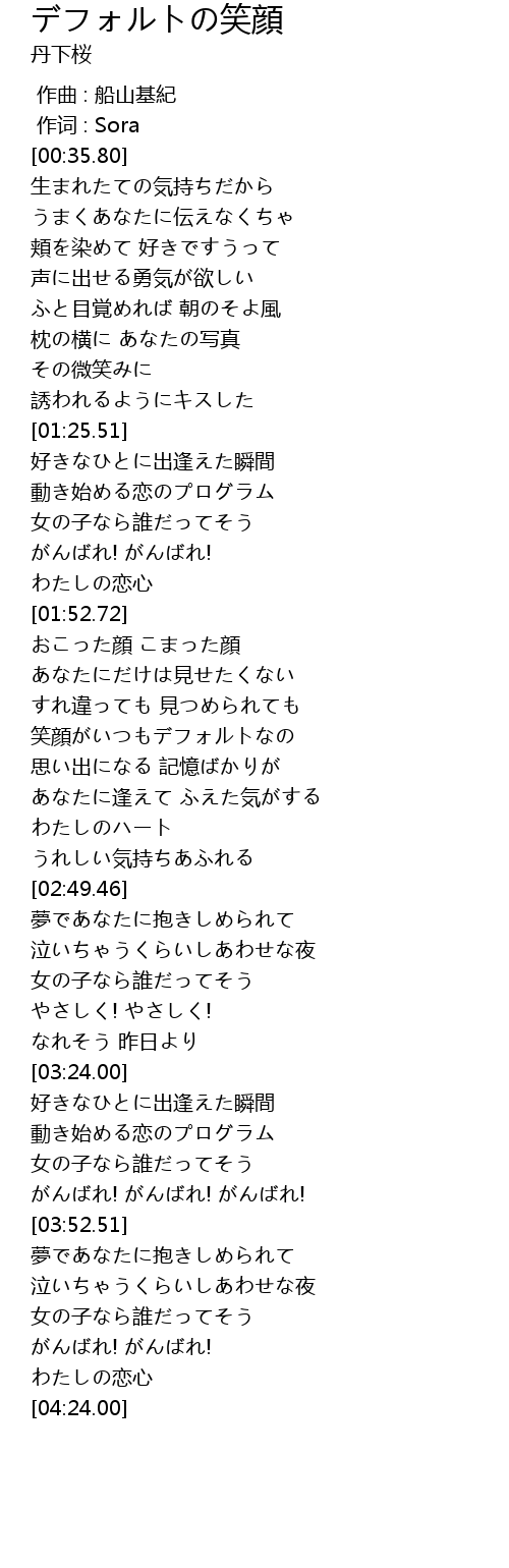 | [02:20.03] | 笑顔がいつもデフォルトなの |
