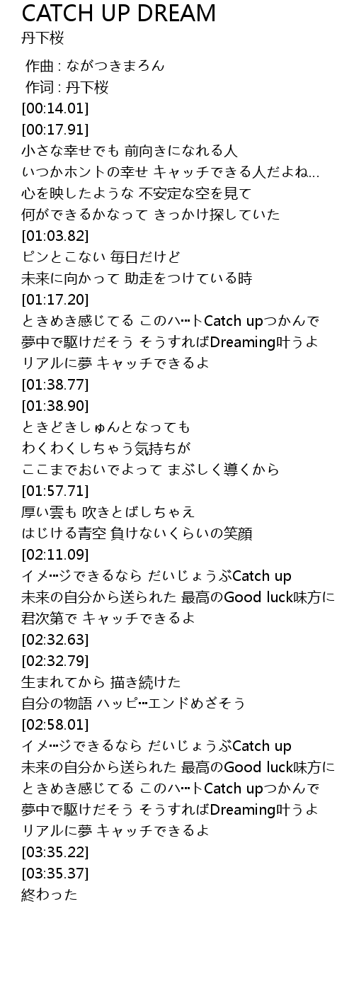 | [03:00.77] | Catch up |
