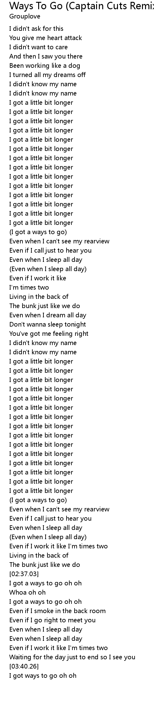 I got a ways to go oh oh |