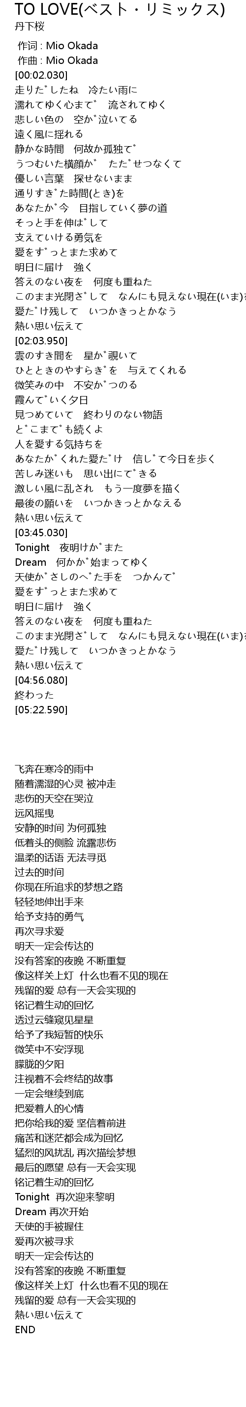 | [04:42.510] | 愛だけ残して いつかきっとかなう |