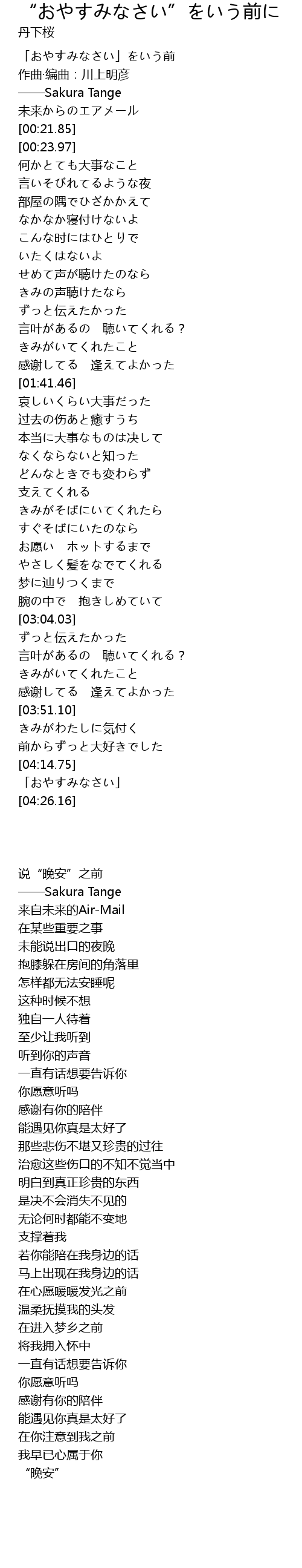 | [00:03.73] | 「おやすみなさい」をいう前 |