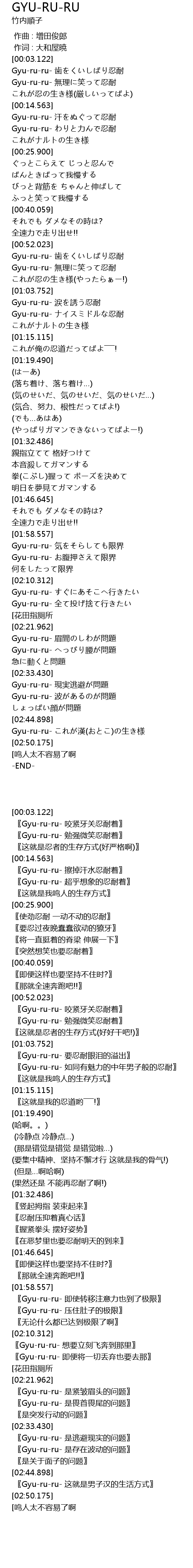| [00:52.101] | Gyu-ru-ru- 歯をくいしばり忍耐 |