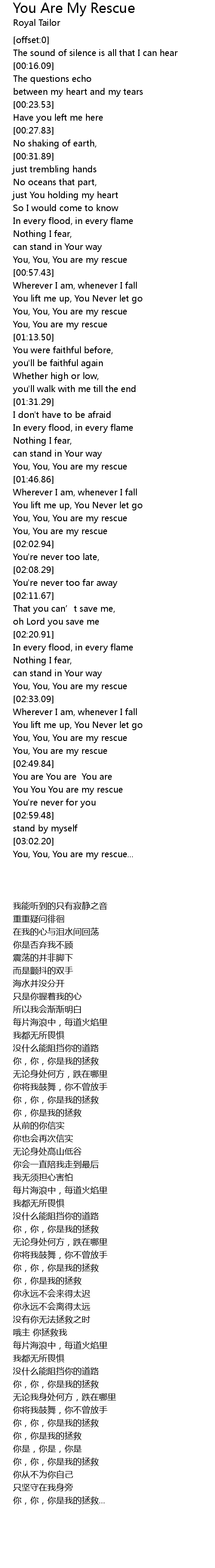 | [01:58.27] | You, You are my rescue |