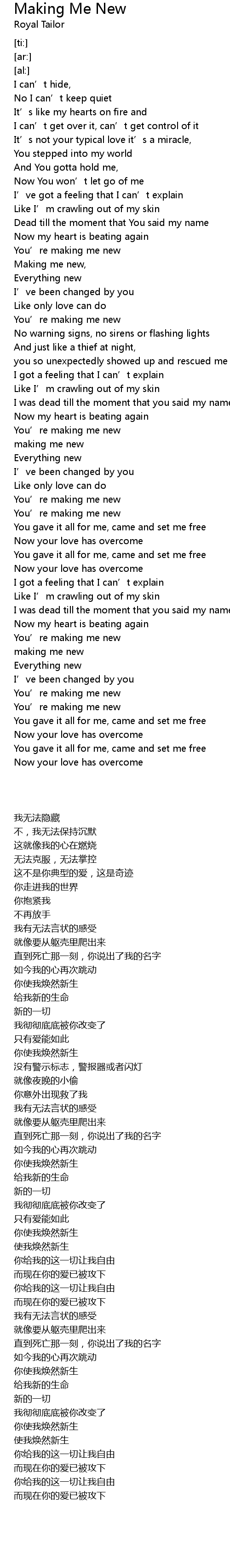 | [00:47.97] | You’re making me new |