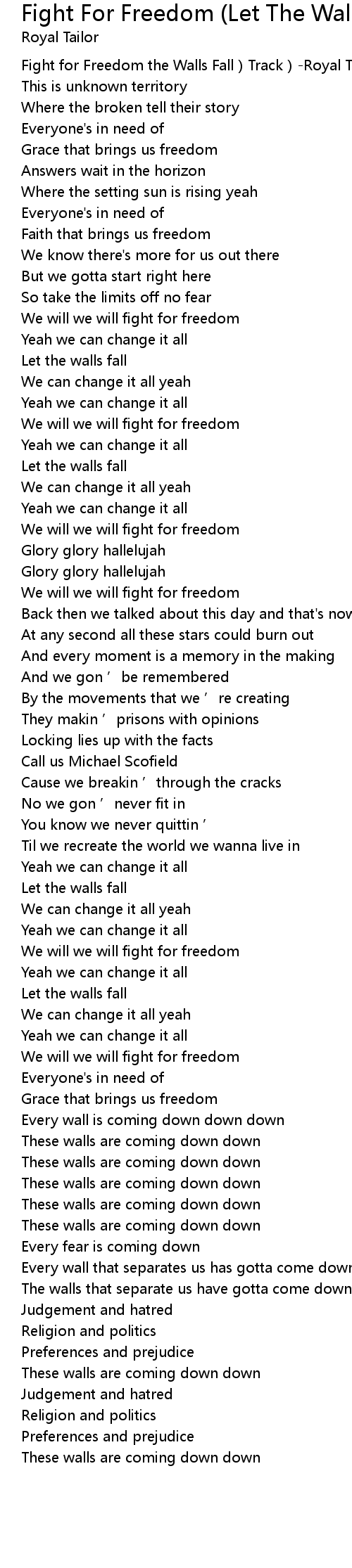 | [00:00.800] | Fight for Freedom the Walls Fall Track Royal Tailor |