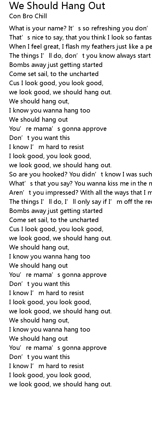 | We should hang out, | |