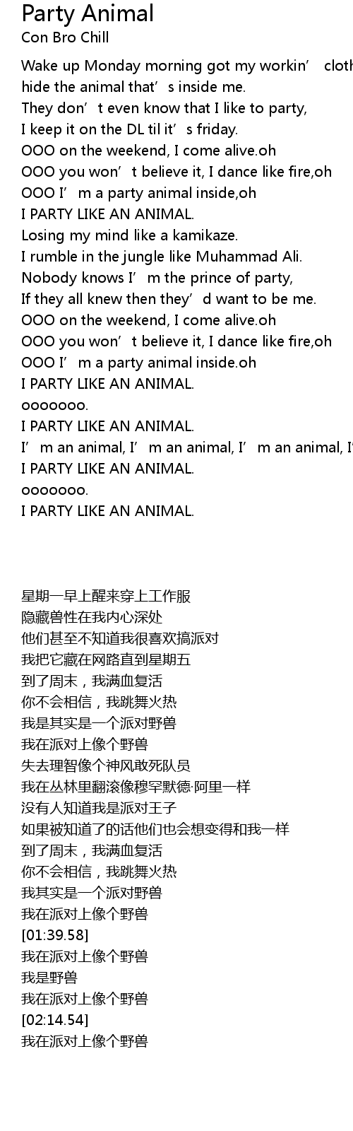 | [00:48.15] | I PARTY LIKE AN ANIMAL. |