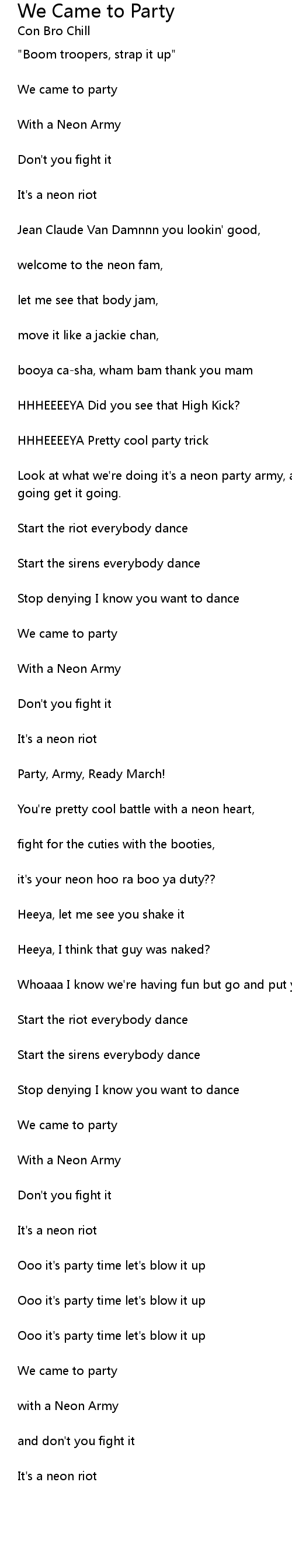 Look at what we're doing it's a neon party army, and I know you want to get it going get it going. |