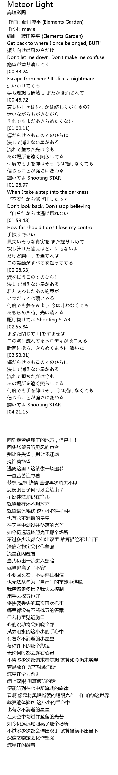 | [04:17.84] | 輝いてよ Shooting STAR |