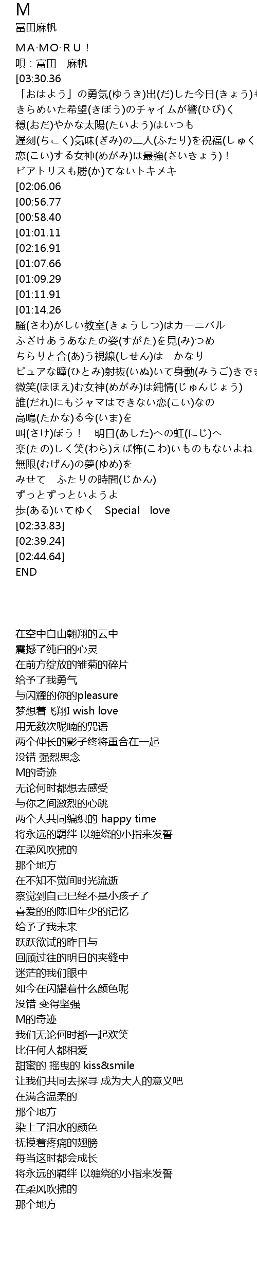 | [03:14.14][02:16.91][01:05.99] | そうよ MA·MO·RU! |