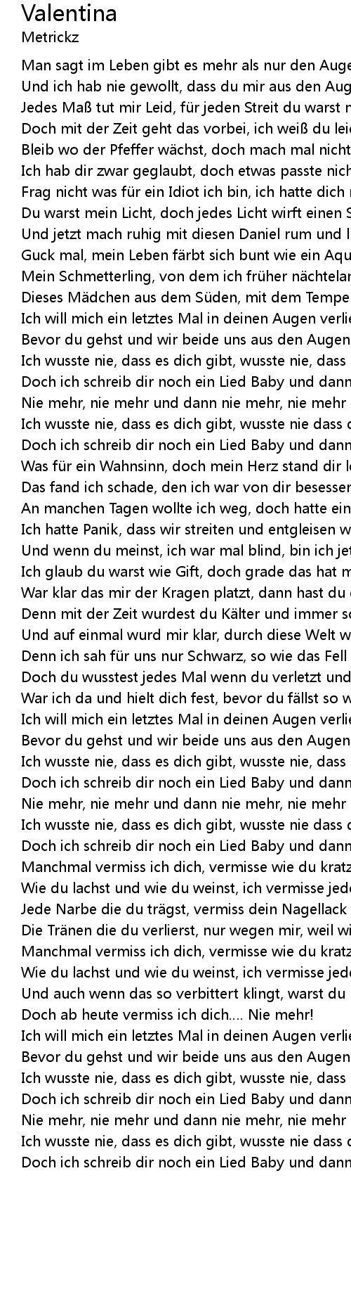 | Doch ich schreib dir noch ein Lied Baby und dann nie mehr |