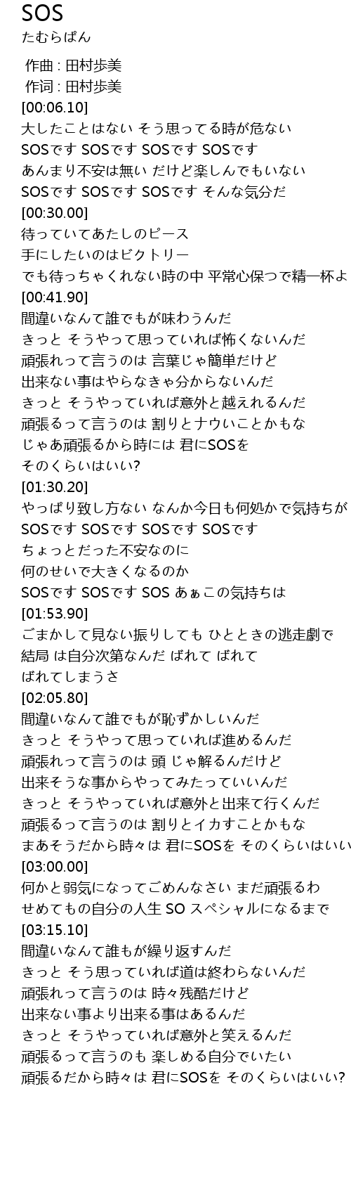 | [00:12.19] | SOSです SOSです SOSです SOSです |