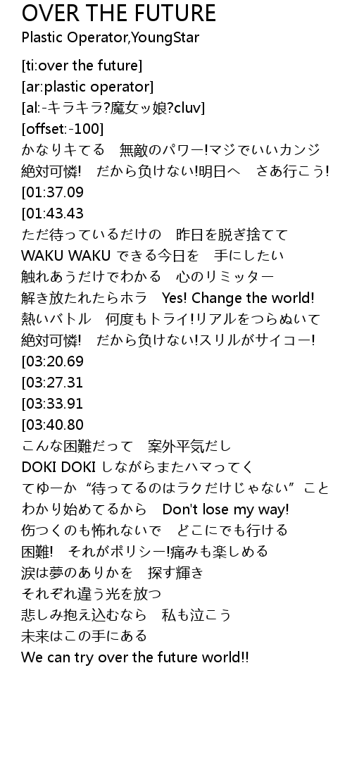 | [01:30.70][03:40.80] | 未来を今超えよう |