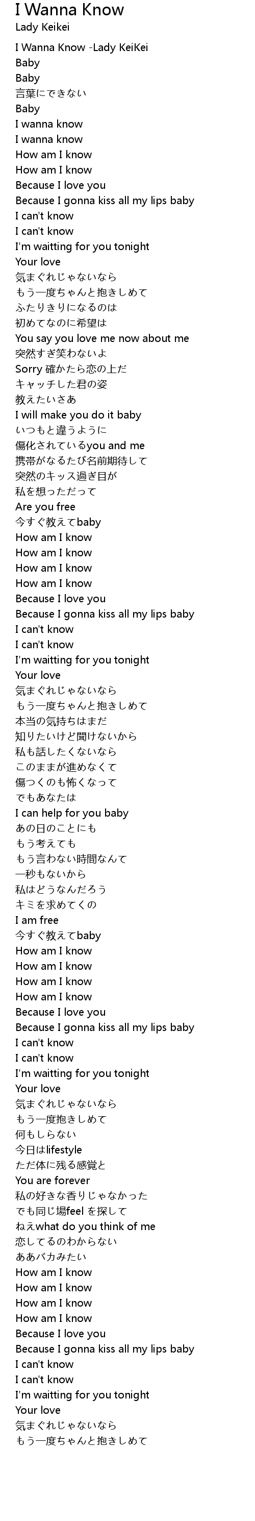 | [00:00.534] | I Wanna Know -Lady KeiKei |