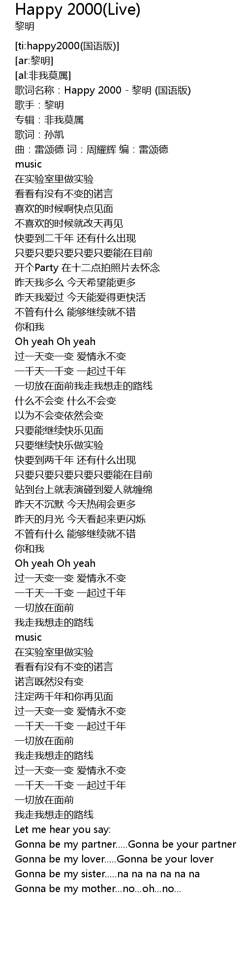 | [00:02.20] | gē cí míng chēng: Happy 2000 lí míng guó yǔ bǎn |