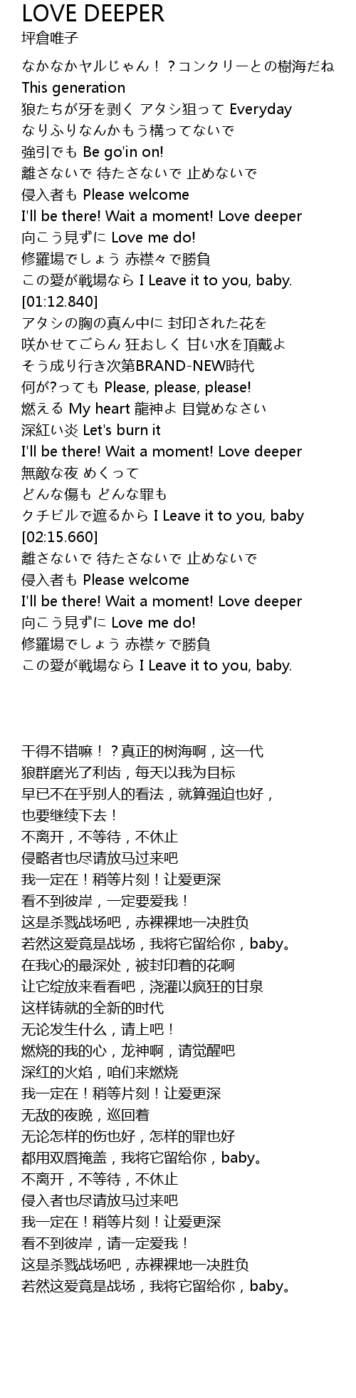 | [00:53.110] | I' ll be there! Wait a moment! Love deeper |
