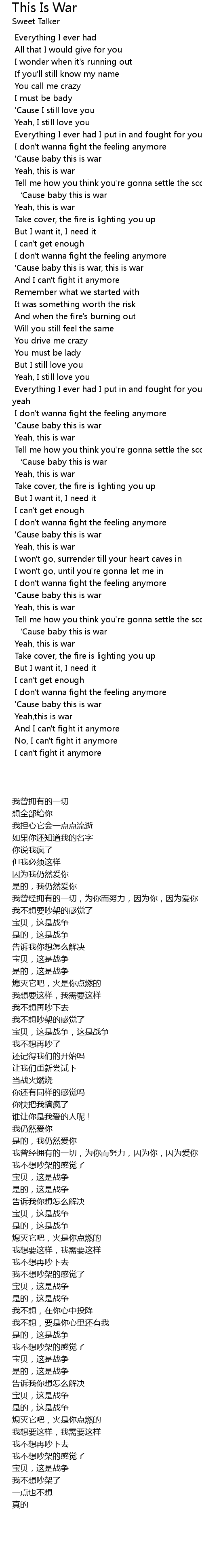 | [1:03:66] | ' Cause baby this is war, this is war |