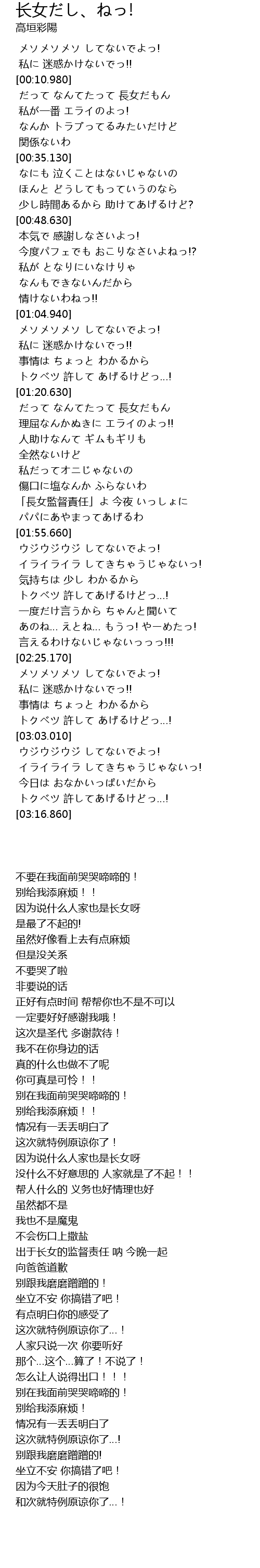 | [00:21.420] | だって なんてたって 長女だもん |