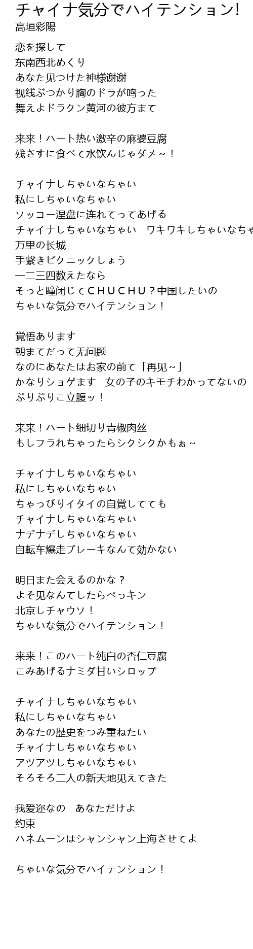 | Song | チャイナ気分でハイテンション! |