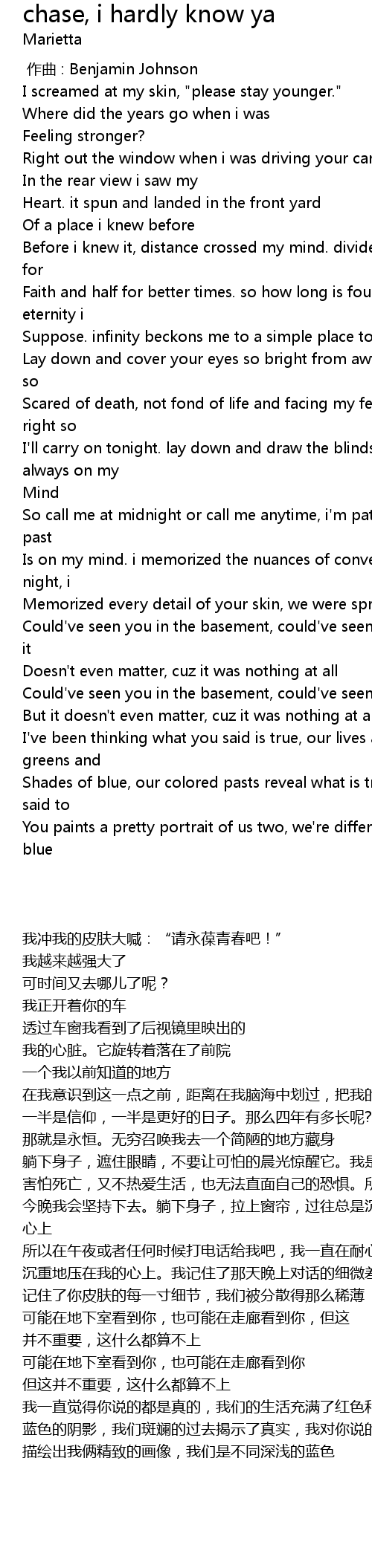 | [00:00.000] | zuo qu : Benjamin Johnson |