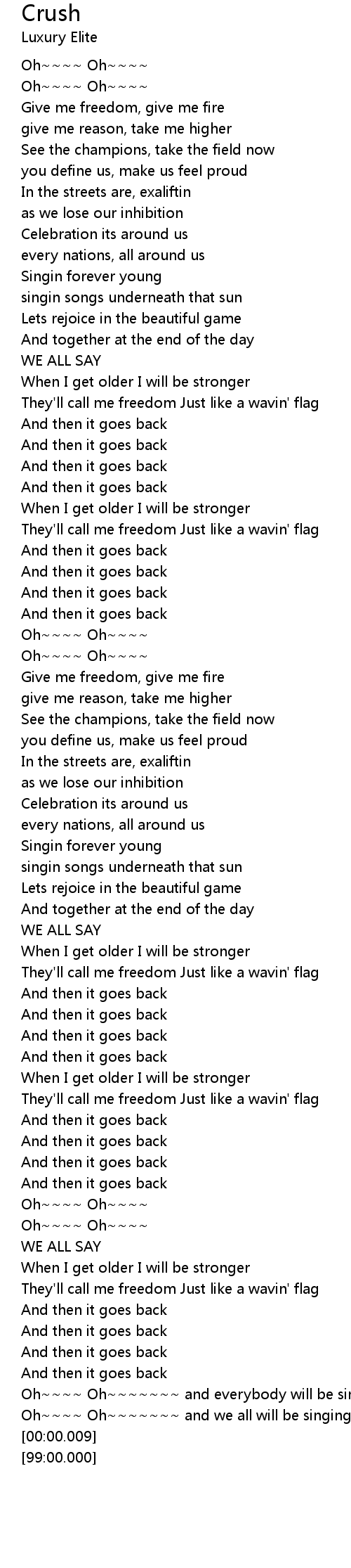 [02:31.75] They'll call me freedom Just like a wavin' flag