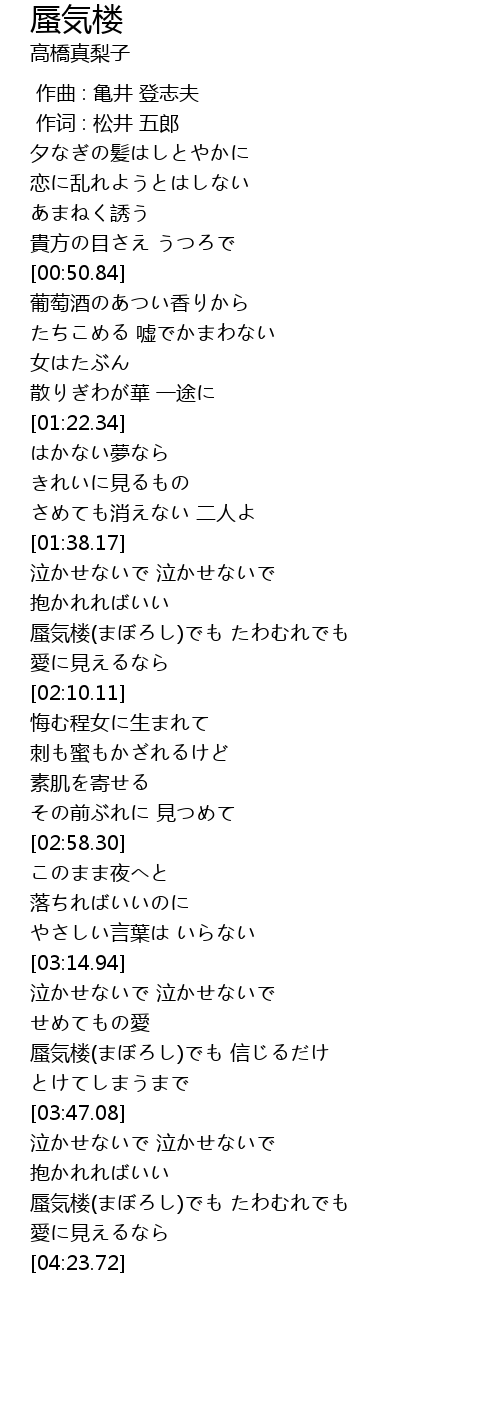 | [01:54.35] | 蜃気楼(まぼろし)でも たわむれでも |