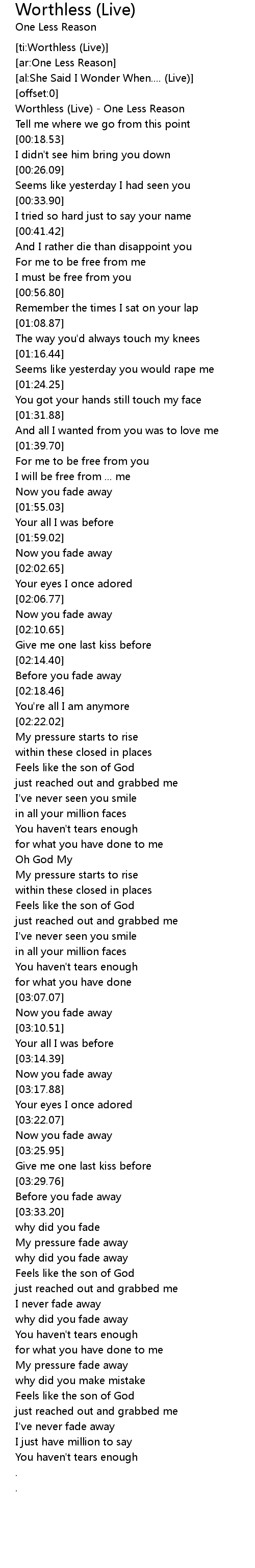 [ti:Worthless (Live)] |