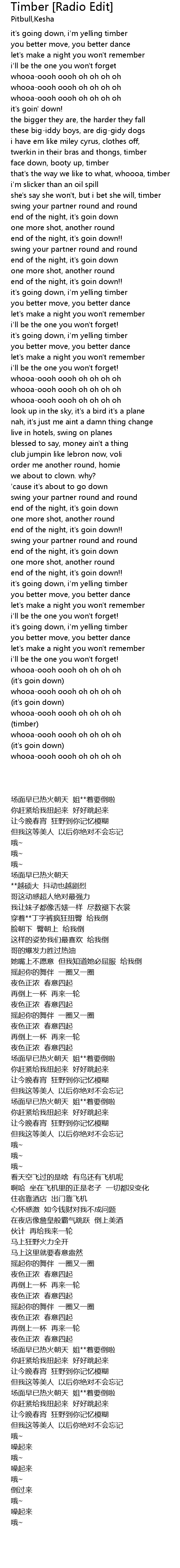 | [00:50.600] | she's say she won't, but i bet she will, timber |
