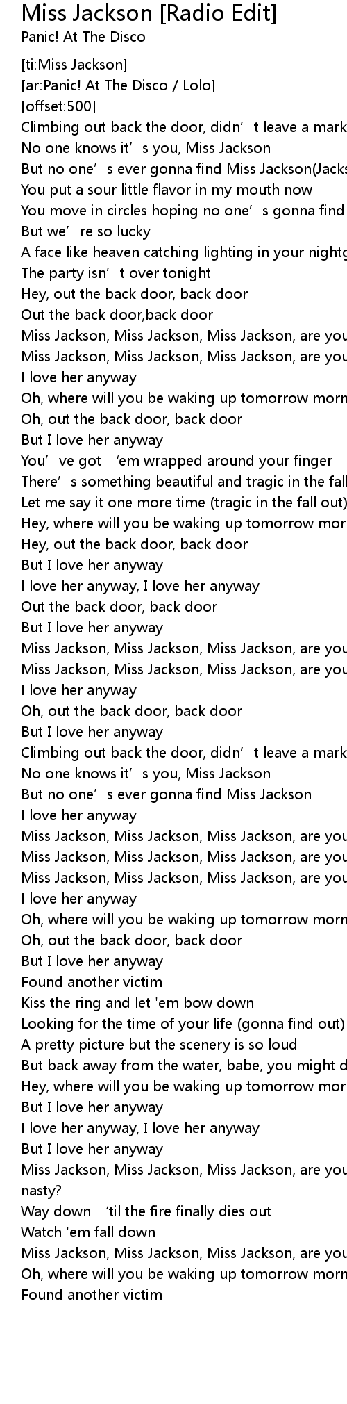 | [ti:Miss Jackson] | |