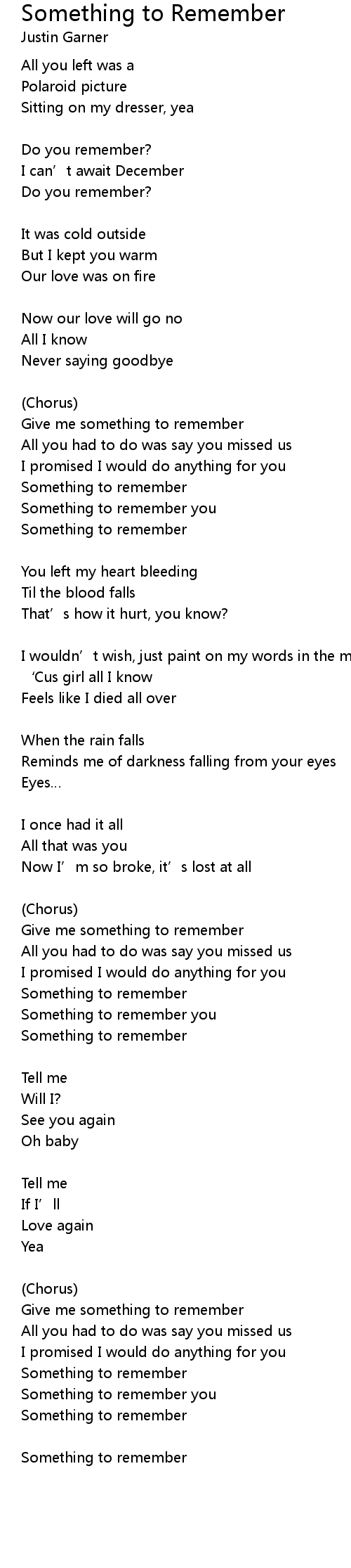 | Give me something to remember | |