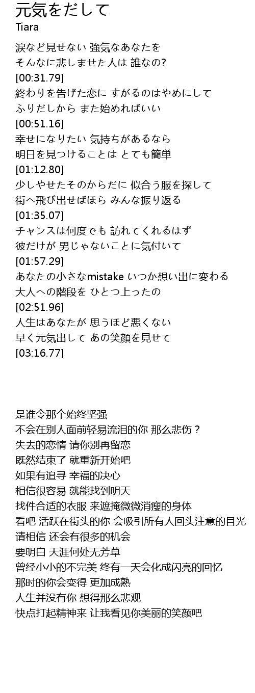 | [03:06.26] | 早く元気出して あの笑顔を見せて |