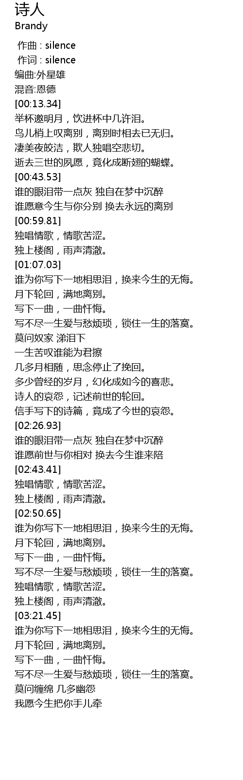 | [00:00.00] | 作曲 : silence |