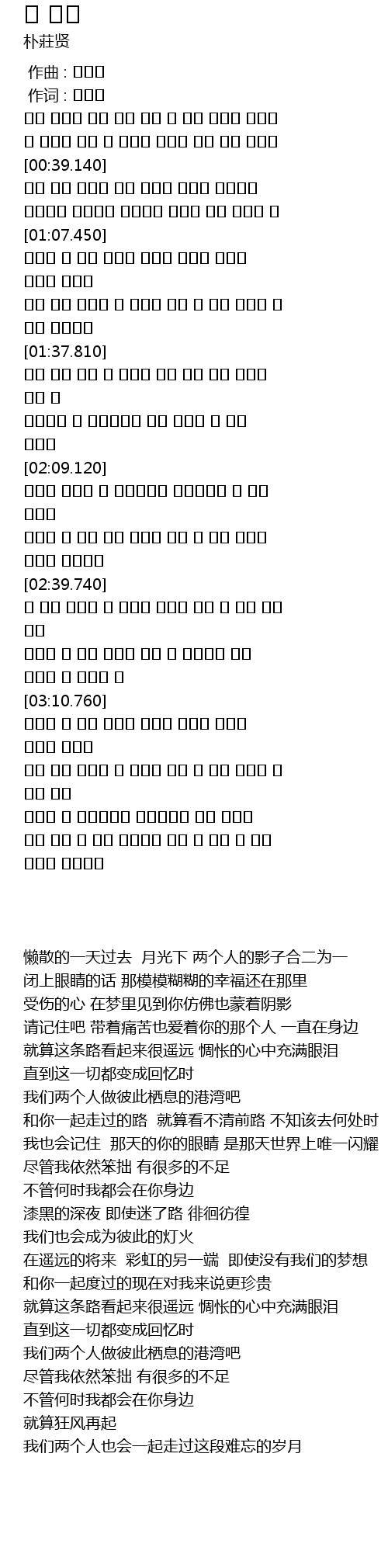 모든 일이 추억이 될 때까지 우리 두 사람 서로의 쉴 곳이 되어주리 |