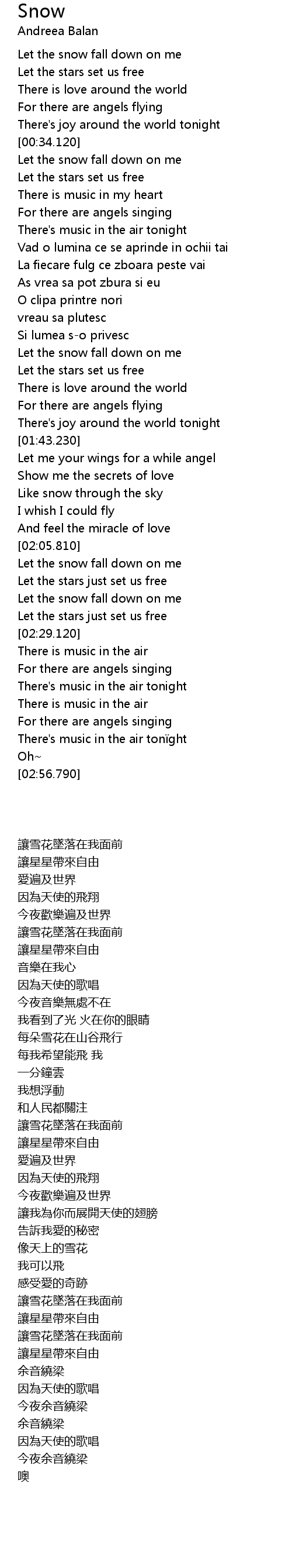 | [01:56.120] | Like snow through the sky |