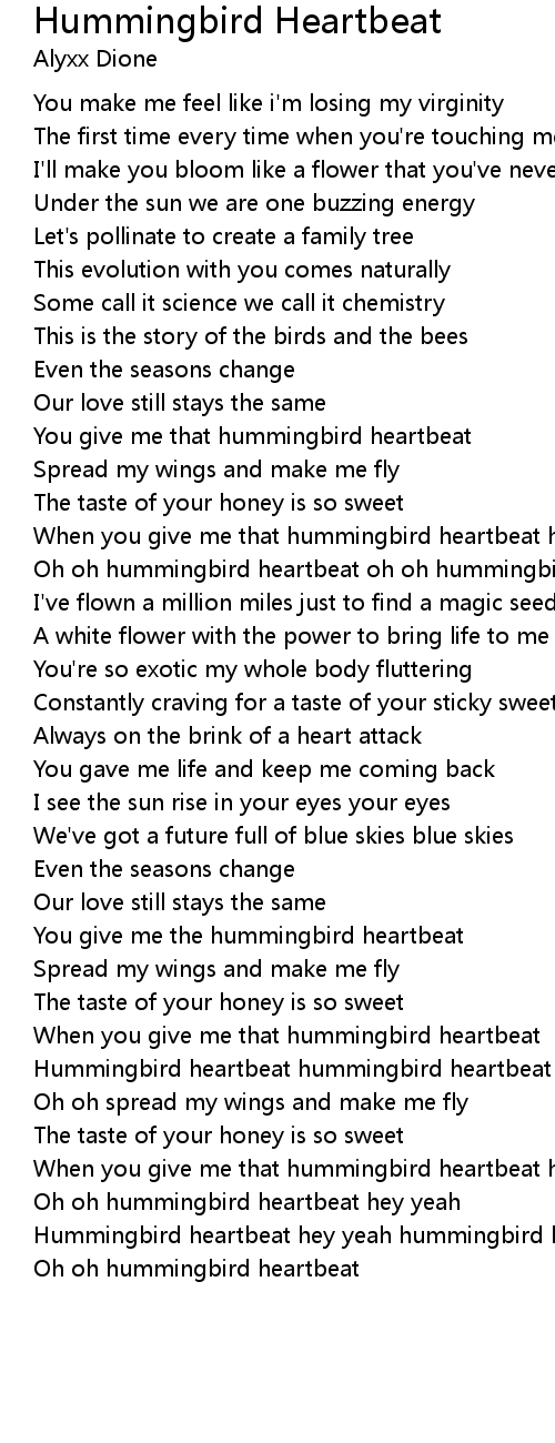 When you give me that hummingbird heartbeat hummingbird heartbeat |