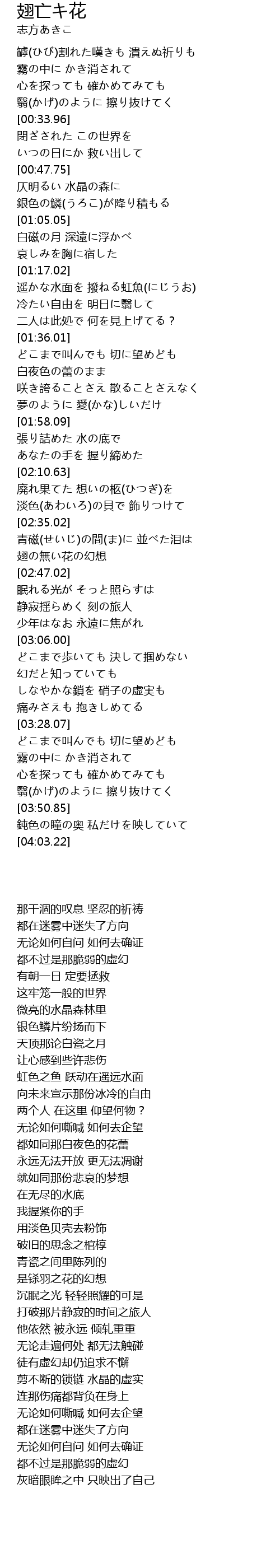 | [03:17.18] | しなやかな鎖を 硝子の虚実も |