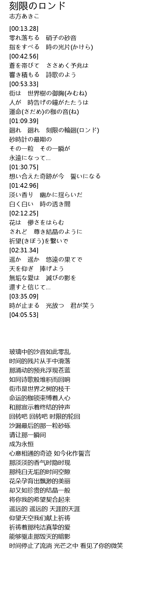 | [01:09.40] | 廻れ 廻れ 刻限の輪廻(ロンド) |