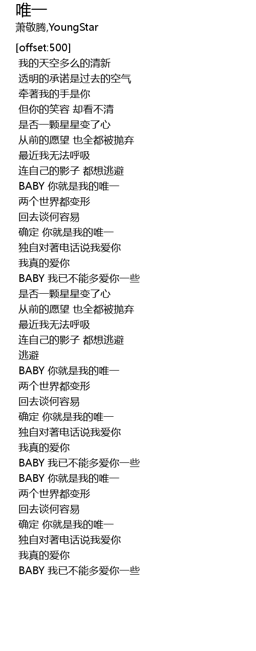 | [01:16.560] | BABY 你就是我的唯一 |