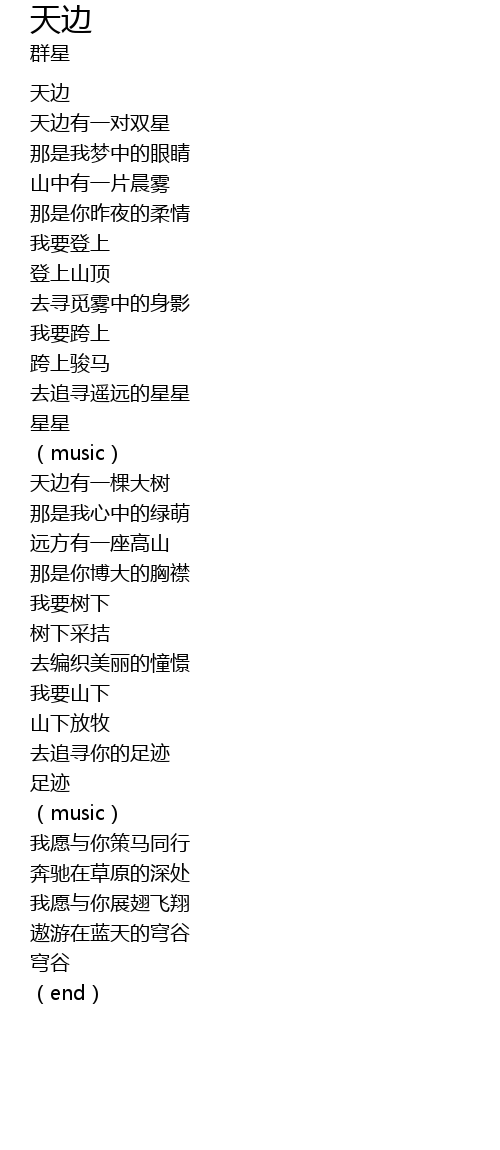 | [00:42.88] | tiān biān yǒu yī duì shuāng xīng |