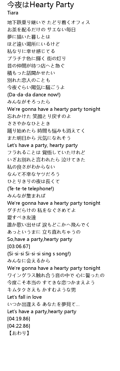 | [01:50.54] | Let' s have a party, hearty party |