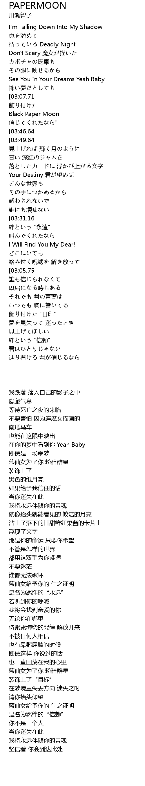 | [00:59.80] | Black Paper Moon |
