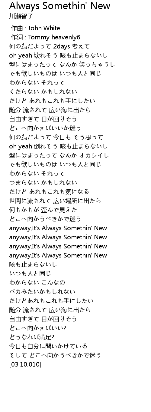 | [01:59.584] | anyway,It's Always Somethin' New |