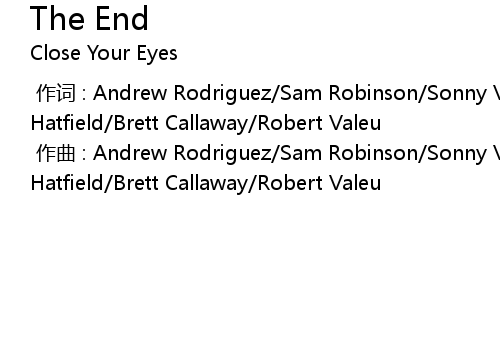 | [00:00.000] | zuò cí : Andrew Rodriguez Sam Robinson Sonny Vega Jordan Hatfield Brett Callaway Robert Valeu |