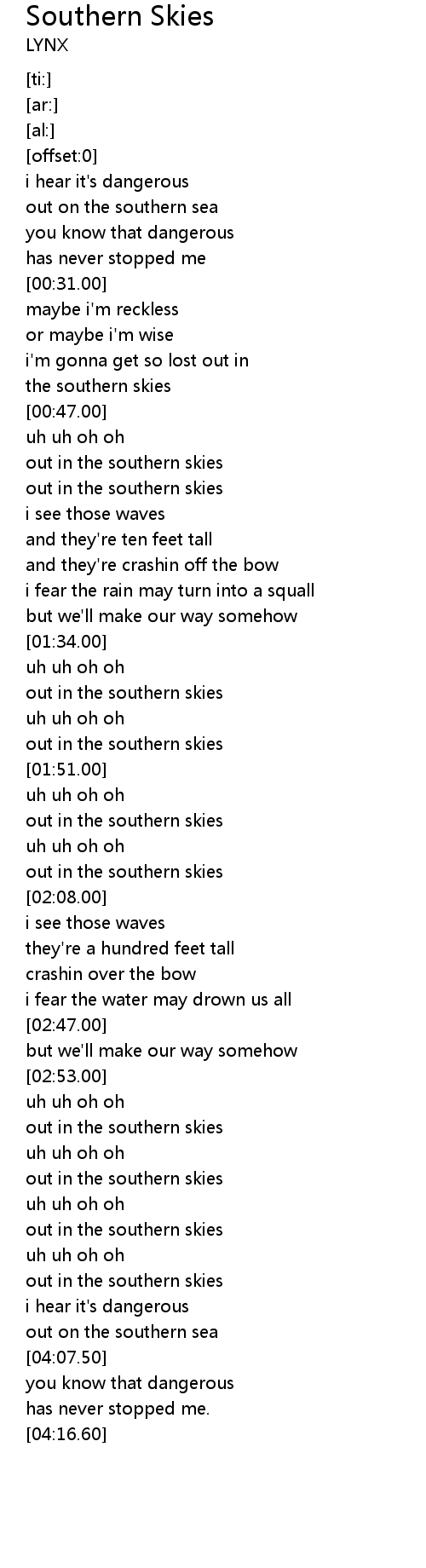 the southern skies |