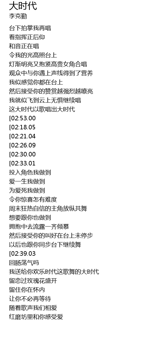 | [00:59.00][02:18.05][03:00.04] | 永远相爱这大时代 |